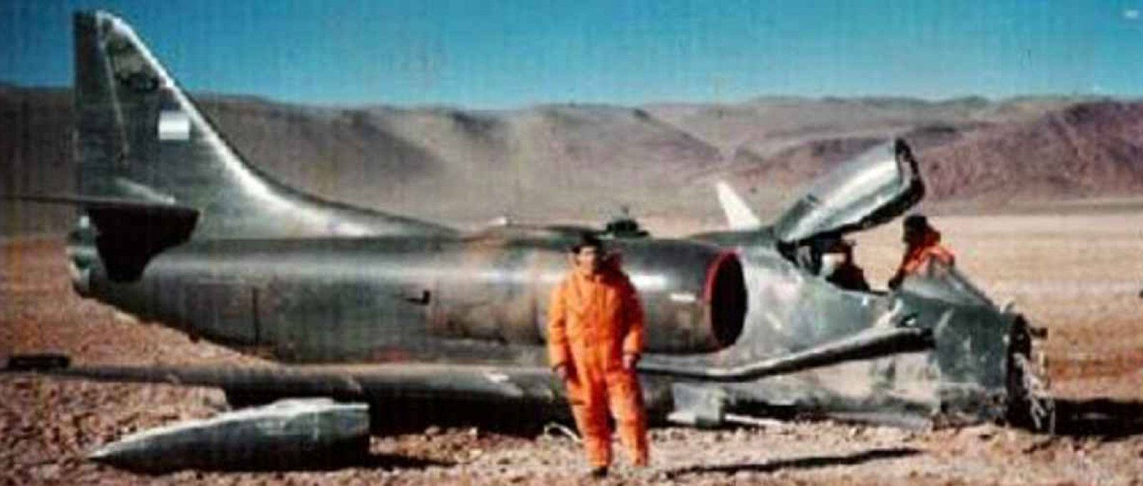 Em 23 de Junho de 1994, o A-4B matrícula C-209, voando em formação num treinamento com sua unidade, sofreu uma pane de motor entre as montanhas. O piloto imediatamente tentou reativa-lo, mas ao perceber que não conseguiria, decidiu ejetar. Ele contou que nesse momento começou a parte mais difícil. Ele se preparou para ejetar puxando uma das alças de ejeção, mas nada aconteceu; em seguida, puxou a outra alça e tampouco aconteceu nada. Olhou em volta e percebeu que estava saindo da área montanhosa, enquanto o avião, com o motor apagado, se dirigia inexoravelmente para o solo, por falta da propulsão do motor que gera empuxo e por consequência o constante fluxo de ar sob as asas que sustenta o avião.
