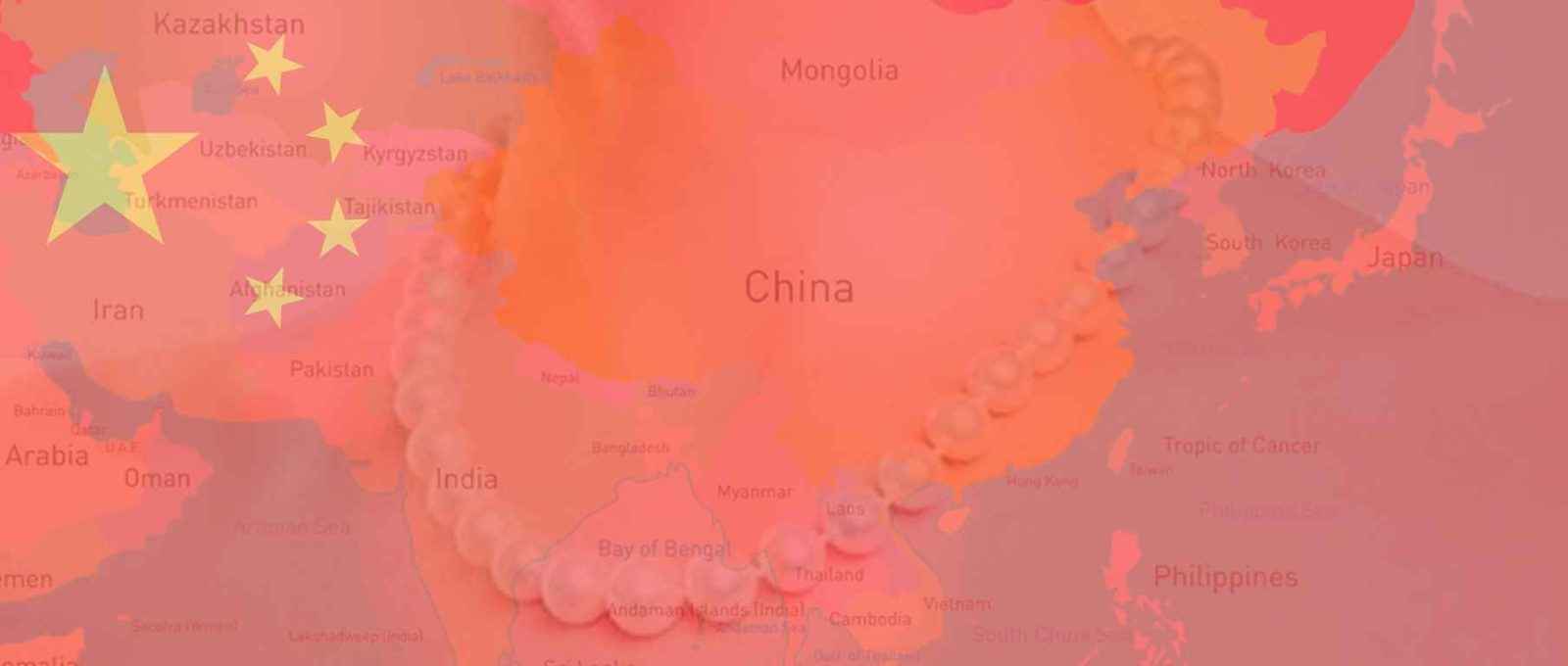 Os crescentes interesse e influência chineses, desde o Mar da China Meridional até o Oceano Índico e o Golfo da Arábia, podem ser descritos como semelhantes a um Colar de Pérolas. Cada pérola, no seu respectivo cordão, é um nexo da influência geopolítica chinesa ou da sua presença militar. As pérolas importantes são: Ilhas Hainã, com instalações militares recentemente aprimoradas; Ilhas Woody, localizadas no Arquipélago Paracel, a cerca de 300 milhas náuticas a leste do Vietnã; porto de Chittagong, em Bangladesh; o porto de águas profundas em Sittwe, Mianmar; e o porto de Gwadar, no Paquistão, que é estrategicamente localizado nas proximidades do Golfo Pérsico. (CHRISTOPHER J. PEHRSON; String of Pearls: Meeting the Challenge of China’s Rising Power, 2006, p. 3)