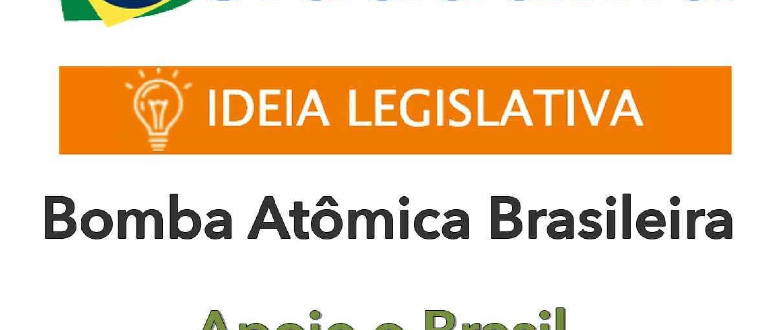A Ideia Legislativa “Bomba Atômica Brasileira”, proposta por VITO ANGELO DUARTE PASCARETTA, do Paraná, visa incentivar o Senado a discutir essa ideia e derrubar as iniciativas que emasculam nossa defesa, a começar pelos tratados internacionais que visam impedir nosso desenvolvimento nessa direção. A ideia apresentada por Pascaretta já conta, no momento desta publicação, com mais de 15.000 apoios. Quando chegar aos 20.000, se tornará uma Sugestão Legislativa e será debatida pelos Senadores.