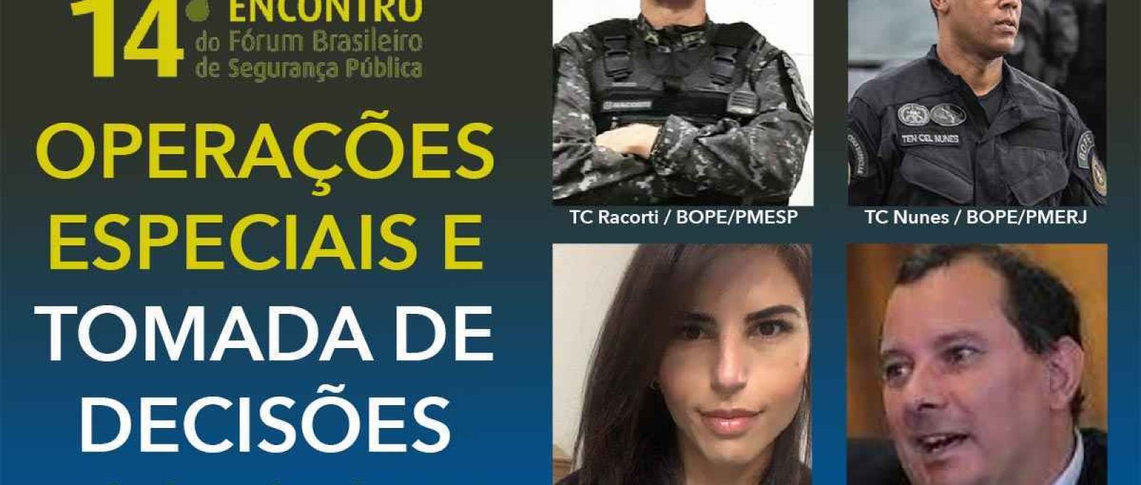 O Fórum Brasileiro de Segurança Pública realiza seu Encontro Anual de 2020, que este ano será virtual. Acompanhe a Mesa de Debates sobre “Operações Especiais e Tomada de Decisões” com a participação de especialistas na área, na próxima sexta-feira 11 de dezembro às 14h30.