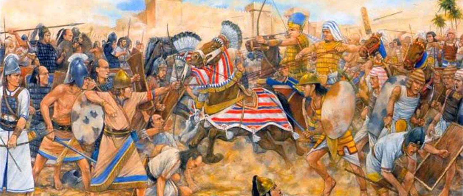 Uma iniciativa inteligente que os sírios usaram para desarticular o avanço das bigas egípcias foi soltar uma égua no cio para desorientar os cavalos, mas a égua foi logo abatida pelos egípcios antes que isso acontecesse.