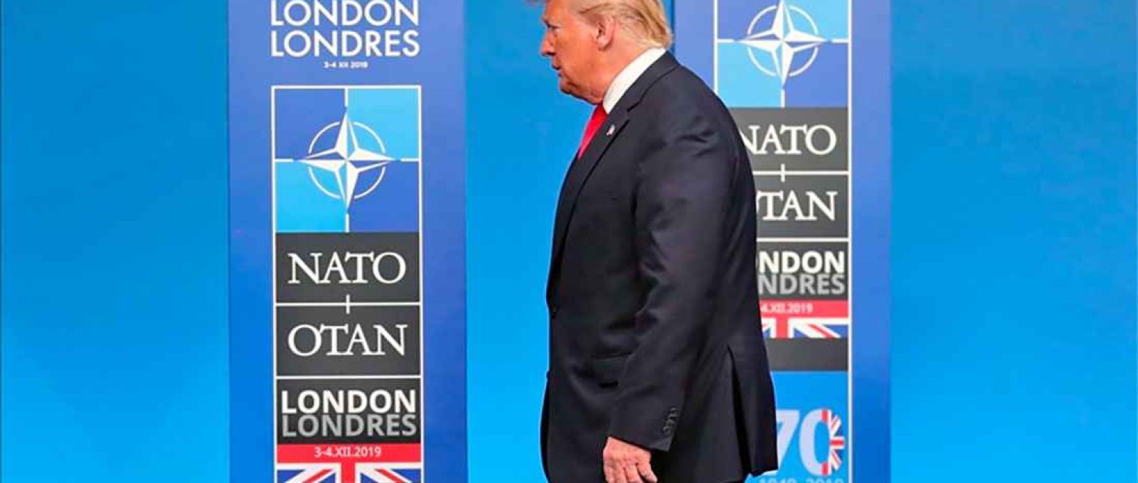 O então presidente dos EUA, Donald Trump, chega à Cúpula da OTAN em Londres, Reino Unido, em 4 de dezembro de 2019 (foto de arquivo – Agência Anadolu). Radar Semanal 23 de fevereiro de 2024 Obstáculo à resposta europeia é falta de alinhamento entre França e Alemanha; Plano de Netanyahu…