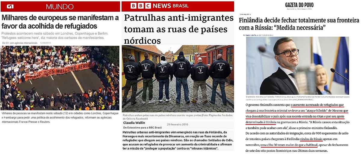 Em 2023, porém, um ponto ficou evidente. A imagem de centenas de refugiados que, percorrendo o território russo (lembremos que a Rússia, territorialmente, é o maior país do planeta, com 11 fusos horários), tentavam adentrar à Finlândia. Apesar de não vermos questionamentos publicados a respeito da própria Rússia não acolhê-los em seu vasto território, restou esclarecido pelo governo finlandês que tratava-se de um “ataque híbrido”, com o imenso contingente humano servindo para desestabilizar aquela nação. Ocorreram protestos, principalmente de grupos de direitos humanos e organizações não governamentais que consideraram uma violação não receber os refugiados (cujo contingente havia se tornado 30 vezes maior que o habitual em um rápido lapso de tempo), bem como uma das obrigações internacionais que a Finlândia deveria cumprir. Tais grupos não questionaram as “obrigações” russas.