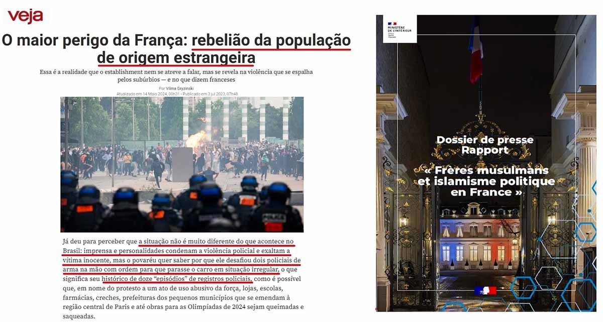 Importante recordar as percepções de Vilma Gryzinski, publicadas em 2024 (mesmo ano do início dos estudos a respeito da Irmandade Muçulmana e um ano antes das publicações feitas pelo Ministério do Interior) que, o observado na França e outros países com grande imigração árabe e africana, transcendia a rejeição à ordem social, mas ao próprio país, seus cidadãos e, portanto, seus hábitos.