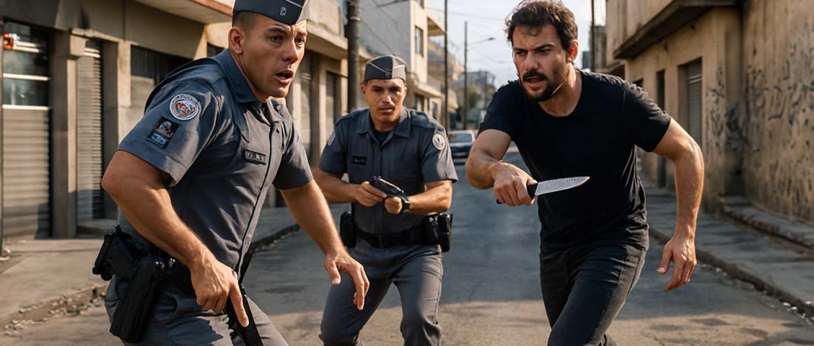 Isso significa que, em muitos cenários de confronto com arma branca, especialmente em ataques surpresa ou ocultos a curta distância, o policial provavelmente será atingido antes de conseguir efetuar um disparo eficaz. Para a polícia brasileira, isso reforça a necessidade de: