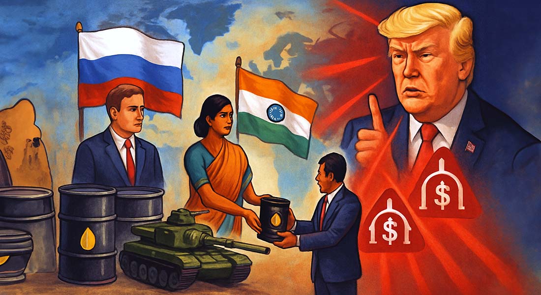 **EXCLUSIVO ASSINANTES** A Índia encara penalidades dos EUA, impostas por Donald Trump, devido à sua crescente dependência de petróleo e equipamentos de defesa russos, aumentando as tensões.