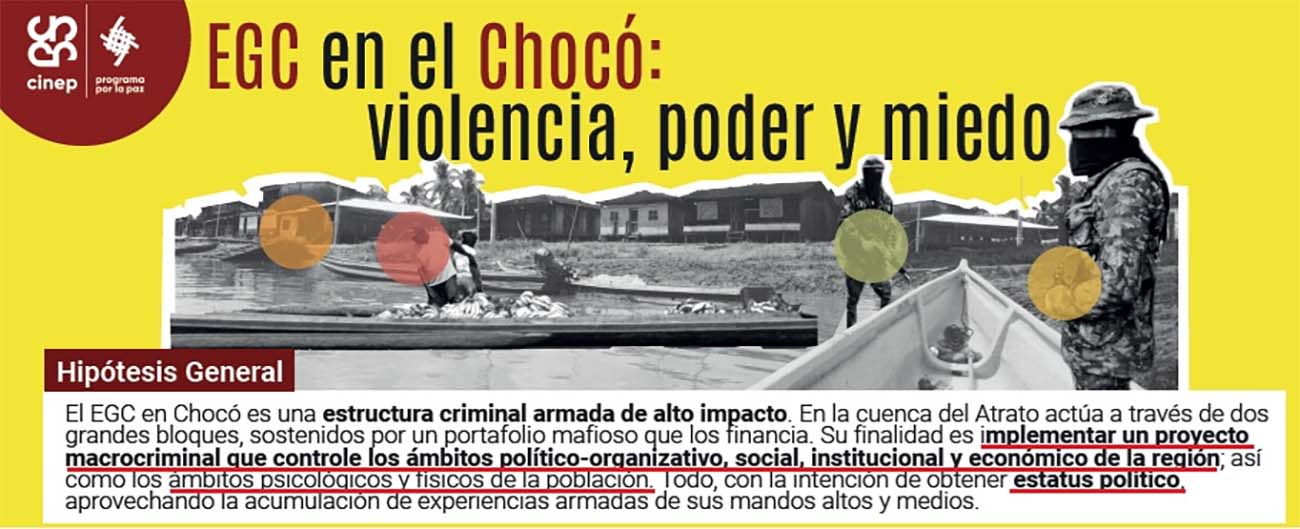 Tendo estabelecido o controle territorial (e, principalmente, social) na região da bacia do Rio Atrato, tal fato demonstra ser uma notável (e ao mesmo tempo triste) demonstração de governança por um ator não-estatal, até pela quase inexistente presença e ação de forças do governo colombiano, nas suas mais diversas esferas (adequado fazer um paralelo com o que ocorre em inúmeras “comunidades” brasileiras ou mesmo em municípios na região de fronteira). O que é fato: aumentaram os casos de violência sexual. Sendo um grupo poderoso, aplica seu próprio regramento pela força, pratica a extorsão, cobra aluguéis ilegais, sobretaxa produtos (novamente, um paralelo com a ação de grupos criminosos que agem em comunidades cariocas), tenta cooptar lideranças locais (ou literalmente as elimina), cria dependência econômica e busca “educar” a população local para galgar algum tipo de status político. É o que fica evidenciado em reportagem da jornalista Cindy Morales Castillo (El Espectador), bem como no relatório publicado pelo CINEP – Programa Paz, intitulado EGC em el Chocó: Violencia, Poder y Miedo. Se não fosse suficiente, tão preocupante quanto, continua sendo o alistamento de jovens (particularmente de origem indígena) por intermédio das escolas de doutrinação. Como exposto no relatório, com a criação de escolas de formação política e militar, ocorrem “aulas” ministradas por profissionais das áreas de ciências sociais e direito (étnico, particularmente).