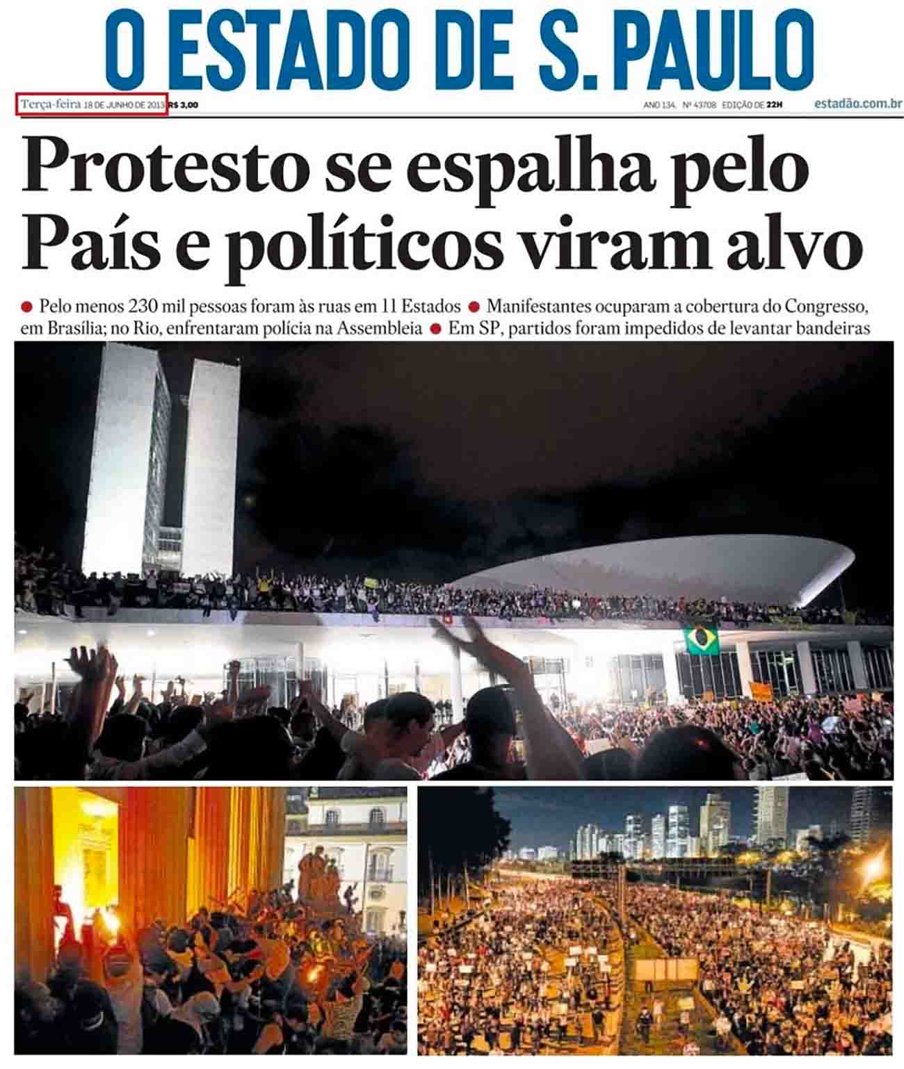As “Jornadas de Junho”, como ficaram conhecidas, foram as imensas manifestações de massas em 2013 que, para alguns, foram consideradas uma insurreição popular de proporção nacional (chegaram a ocorrer, conforme algumas fontes, em aproximadamente 500 cidades, abrangendo todas as regiões do país).
