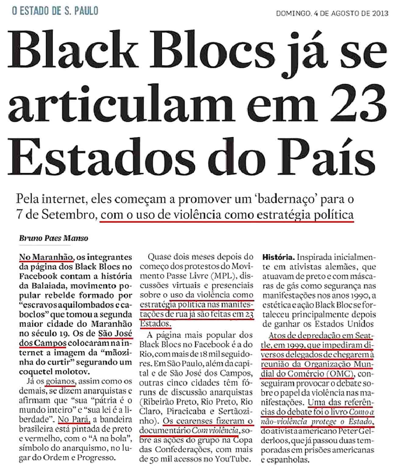 MANSO, Bruno Paes; NOVAES, Willian; SOLANO, Esther. Mascarados: A Verdadeira História dos Adeptos da Tática Black Bloc. São Paulo: Geração Editorial, 2014.