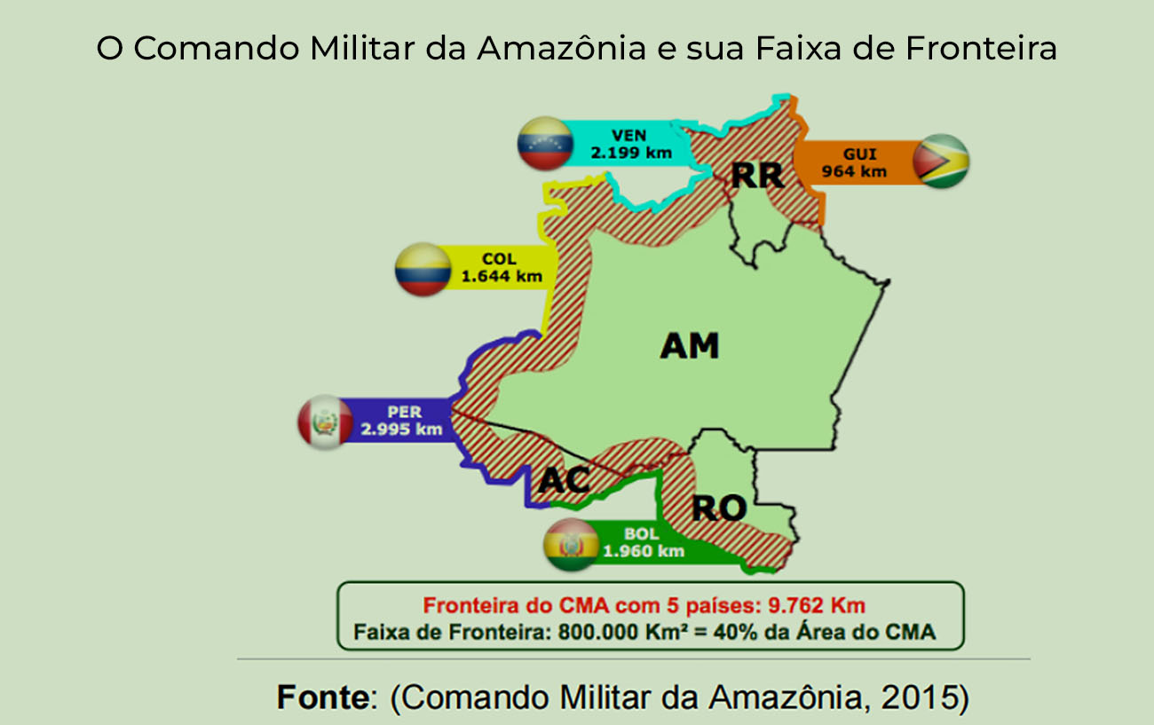 A enorme extensão territorial da Amazônia brasileira, sua baixa densidade demográfica e as dificuldades de mobilidade, bem como seus recursos minerais, seu potencial hidroenergético e a valiosa biodiversidade que abriga, exigem a efetiva presença do Estado, com vistas à sua defesa e à sua integração com as demais regiões do país, contribuindo para o desenvolvimento nacional. A presença de recursos hídricos, minerais e energéticos, bem como toda a indústria bilionária que se beneficia disso, como cosmética, farmacêutica, bens industriais, etc.