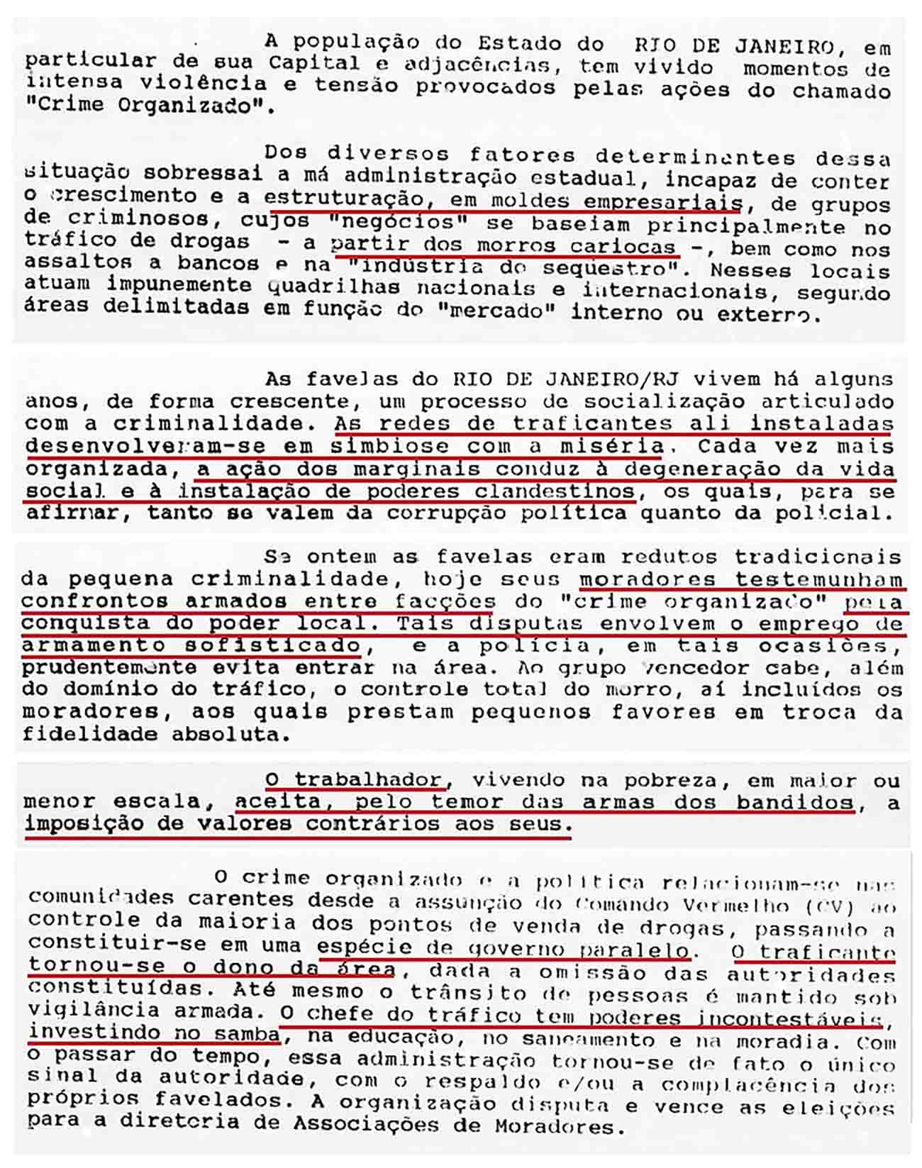 Essas percepções não foram formadas a partir da leitura de um jornal desta semana ou do noticiário. Elas foram escritas em um relatório sobre a criminalidade do Rio de Janeiro com data de 6 de outubro de 1993 (praticamente 32 anos atrás).