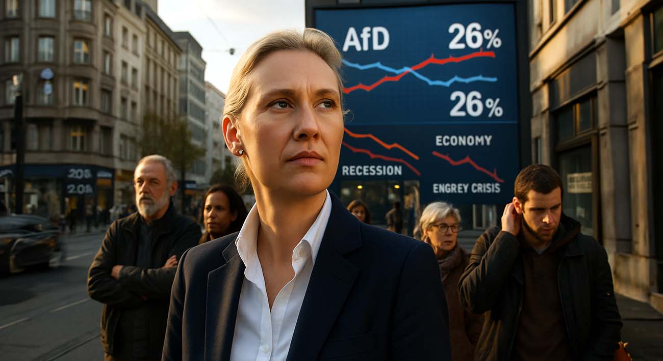Pesquisa revela que a AfD empata com a CDU, resistindo a difamações; seu crescimento, impulsionado pela recessão e custo da energia pós-sanções à Rússia, foca em restaurar a economia alemã e desafia a elite política.