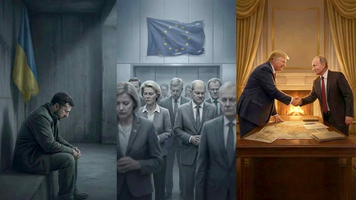 Washington negocia diretamente com Moscou sobre a Ucrânia, marginalizando a União Europeia e pressionando Kiev a aceitar concessões territoriais enquanto o governo Zelensky enfrenta corrupção e derrotas militares.