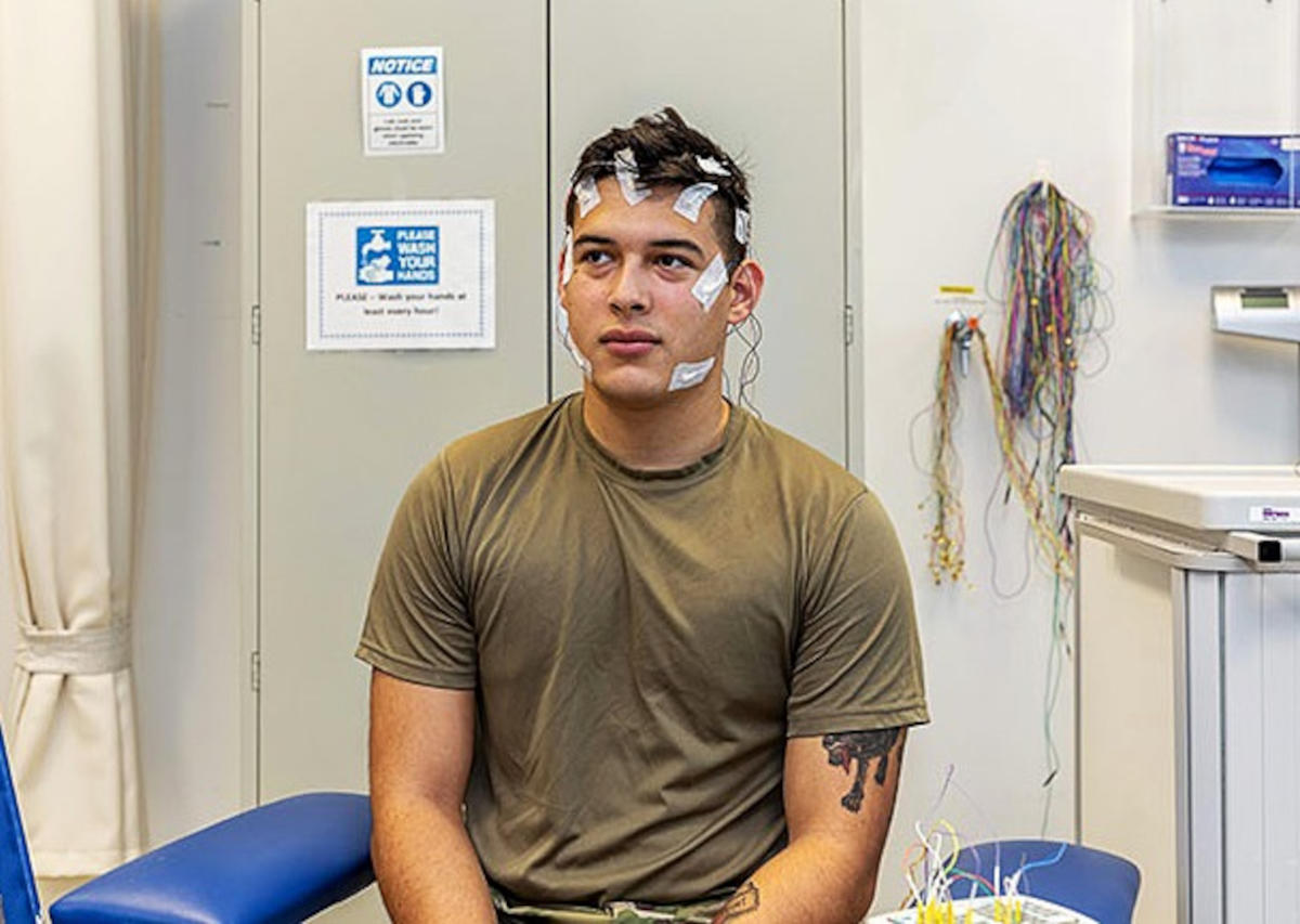Figura 5: Soldado participando de estudo sobre o sono no Centro de Psiquiatria e Pesquisa em Neurociência do Instituto de Pesquisa do Exército Walter Reed, EUA (WRAIR/Arlen Caplan).