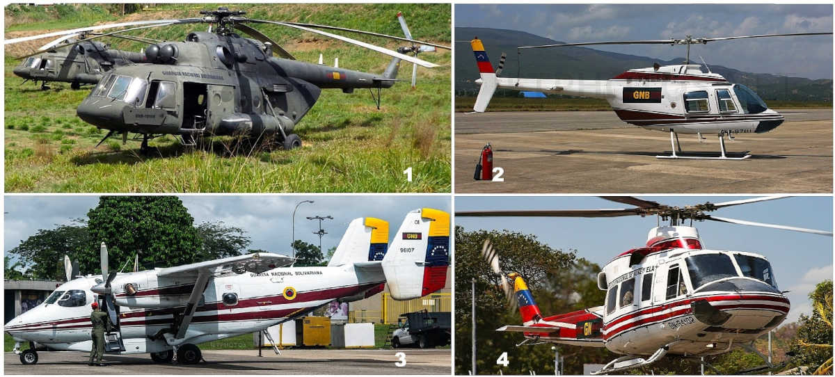 Em relação às aeronaves (asas fixas e rotativas) encontraremos as de origem norte-americana (Cessna 206, Bell 206 e Bell 412, em diferentes versões, Beechcraft King Air B200, Enstrom 280 entre outros), polonesa (como o Mielec M-28 Skytruck, bimotor de transporte de característica STOL (short take-off and landing), para pouso e decolagem em pistas curtas, normalmente com capacidade para 19 passageiros e/ou carga e dois tripulantes, um do desenvolvimento da aeronave Antonov An-28), russa (notadamente os Mil Mi-17 V5 Hip) e israelense (transporte Arava 201, sendo que o de matrícula GN7960 foi perdido em um acidente durante a decolagem, tendo colidido com árvores, muitos anos atrás).