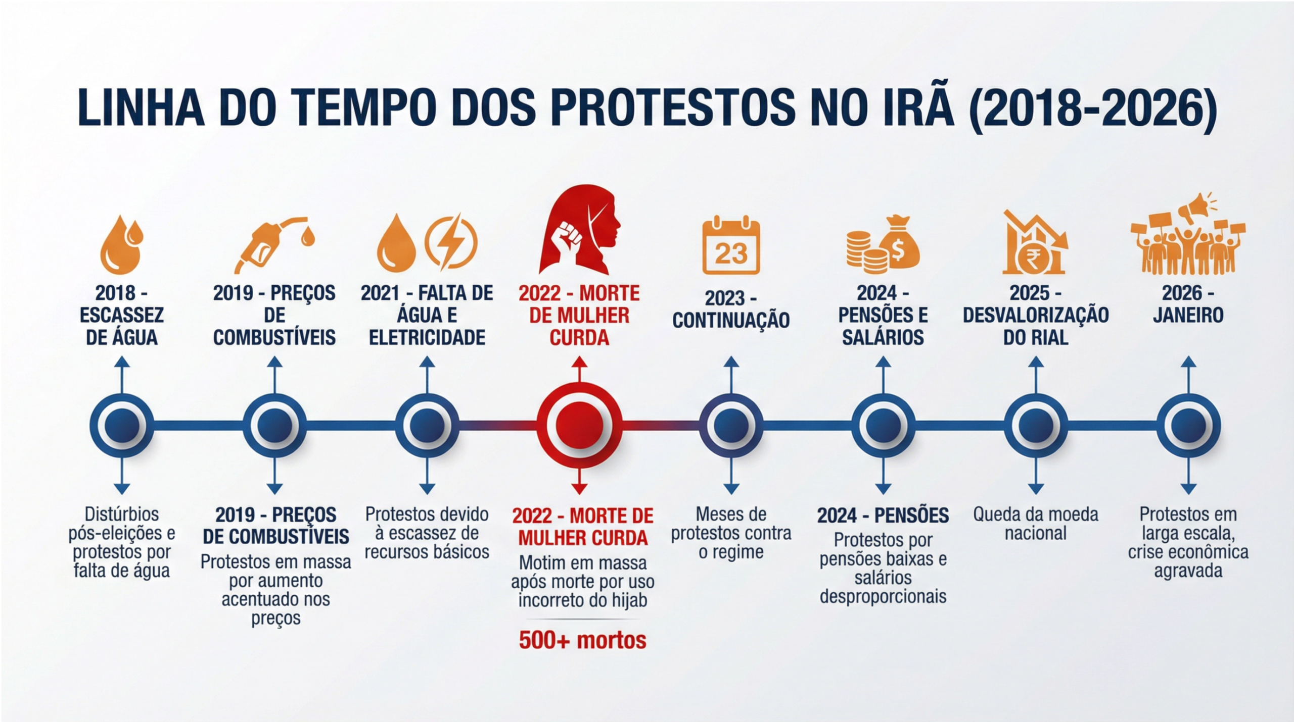 Vale frisar que os protestos do fim de 2025 e de janeiro de 2026 estão longe de serem os primeiros protestos no país em tempos recentes:
