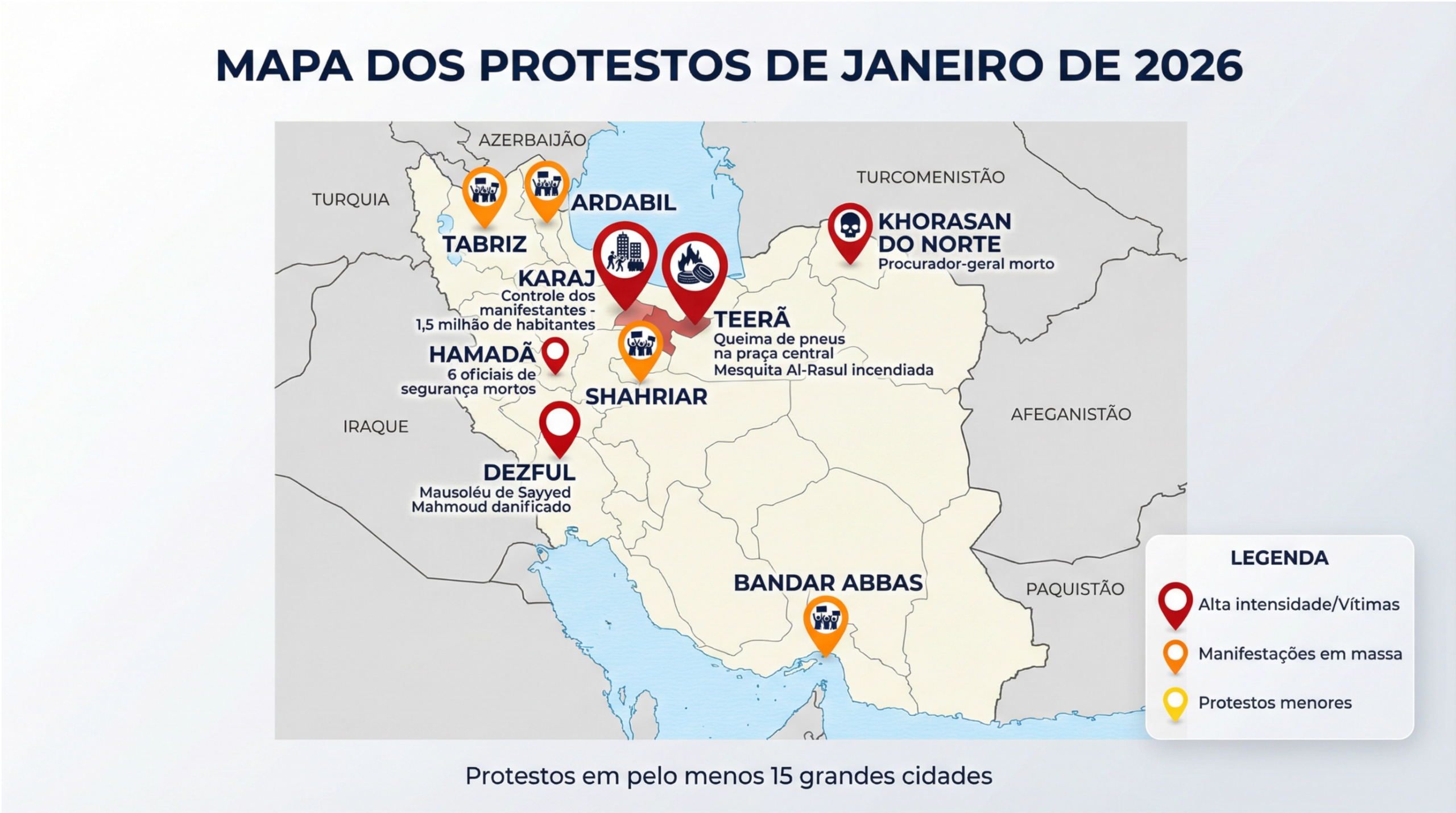 • Alvos dos ataques podem incluir quartéis-generais das forças de segurança, IRGC e polícia;