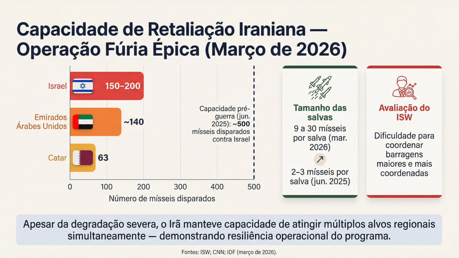 Apesar da degradação, o Irã demonstrou uma capacidade significativa de retaliação: