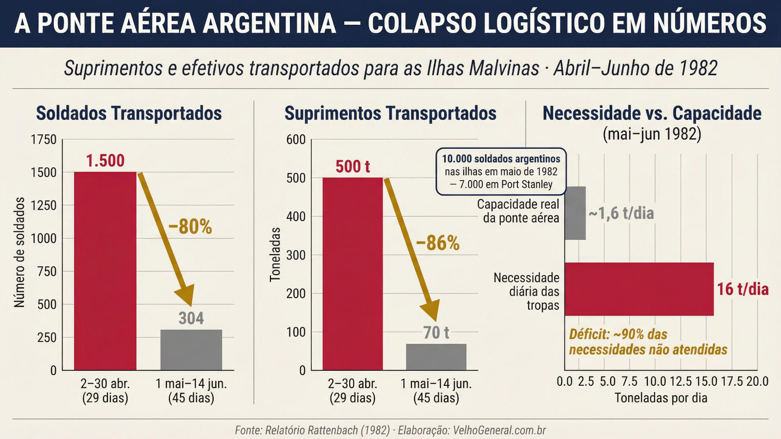Logística deficiente, escassez de combustível e falhas de planejamento foram decisivas na Guerra das Malvinas; com base no Relatório Rattenbach, um exame dos erros argentinos que levaram à derrota, em contraste com a logística britânica.
