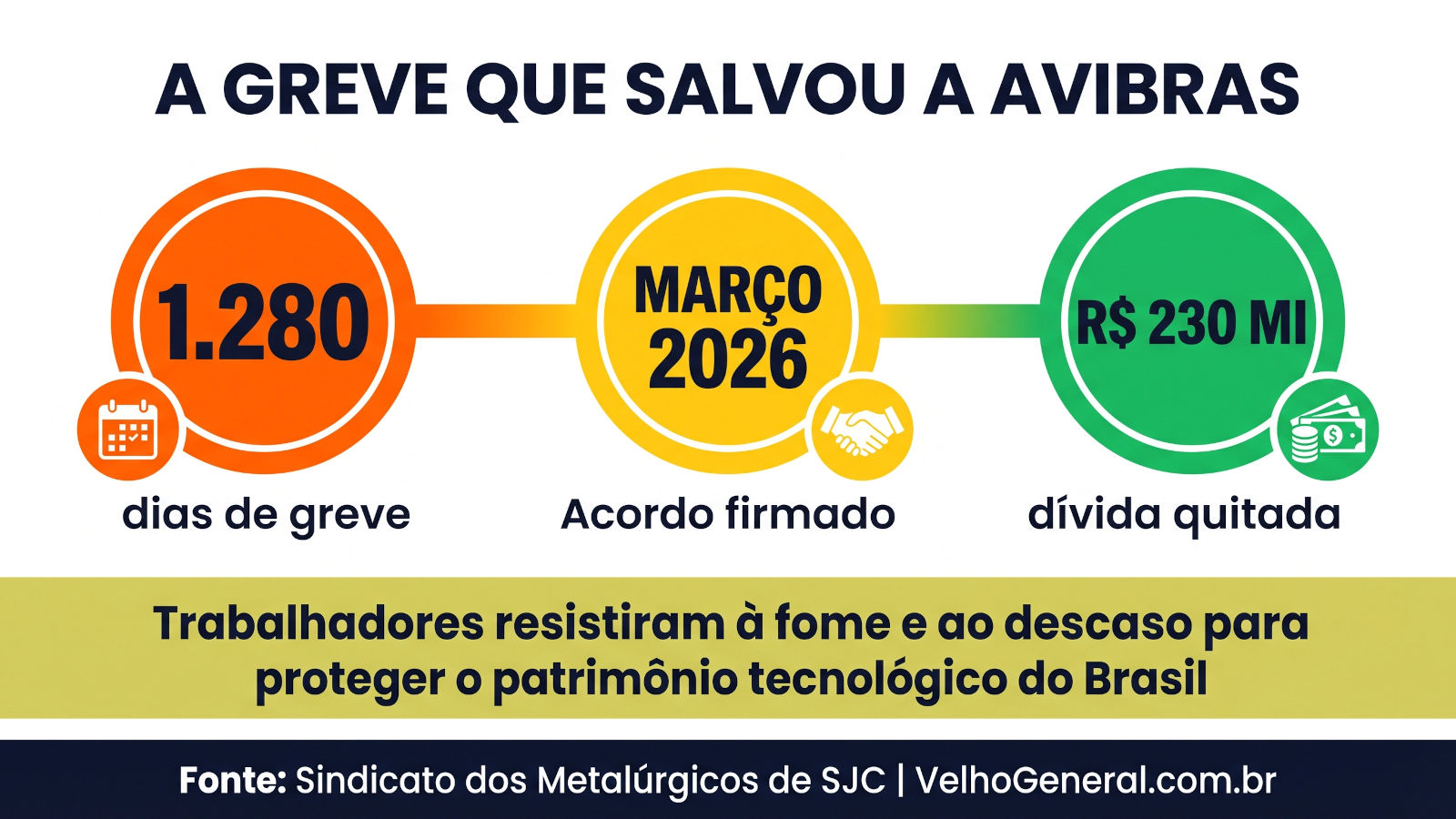 - Sindicato dos Metalúrgicos (SJC): Trabalhadores aprovam proposta para retomada da Avibras e encerram greve de 1.280 dias.
