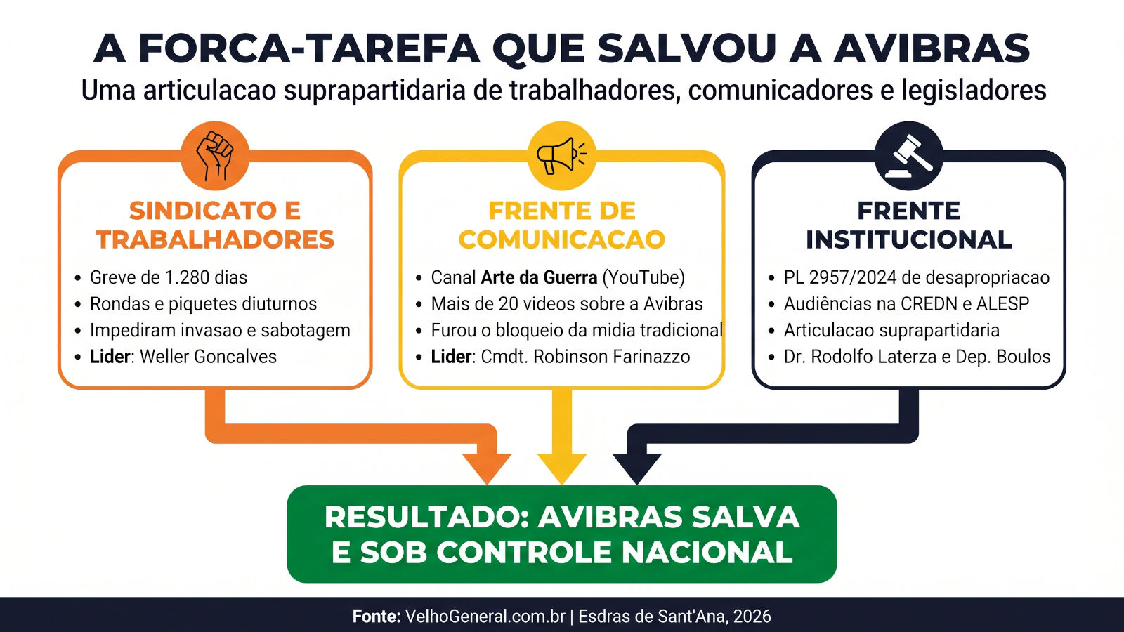 - Canal Arte da Guerra (YouTube): Acervo completo de vídeos do Comandante Robinson Farinazzo com análises diárias e aprofundadas sobre a crise, a soberania e a salvação da Avibras.