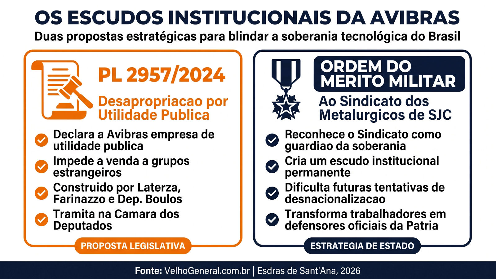 - Velho General: Avibras: há esperança! (Artigo sobre o PL 2957/2024 e a importância da proteção da base industrial de defesa nacional).